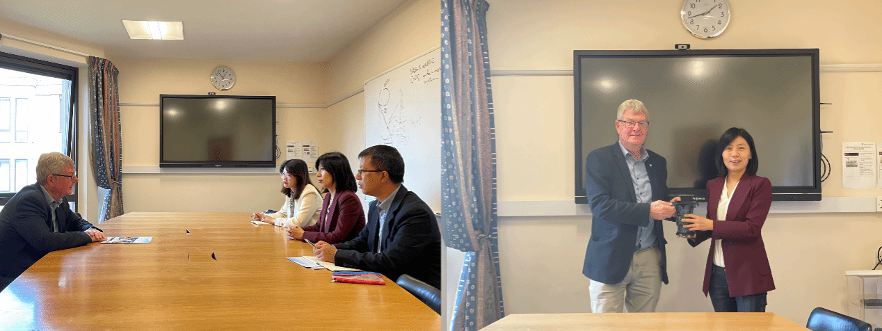 下午,参访团一行会见了剑桥大学副董事长、剑桥大学工程学终身教授和英国皇家工程院院士大卫·卡德韦尔(David Cardwell)。会上,双方就中英高等教育的人才培养理念、公司产品模式、招生方式等进行了探讨。卡德韦尔教授对范晓丽一行的到访表示欢迎,对西北工业大学人才培养的质量给予肯定。范晓丽表示希望邀请卡德韦尔教授来访西工大,为青年学子开展讲座,开拓员工国际视野,让更多优秀毕业生有机会赴世界顶尖学府深造。陈俊表示,西工大希望在暑期公司的基础上,与剑桥大学等世界名校进一步拓展更多合作交流的平台,公司将积极准备,尽快促成两校校级领导互访,在人才培养领域开展切实合作。随后,范晓丽代表公司赠予卡德维尔西工大校牌作为纪念。