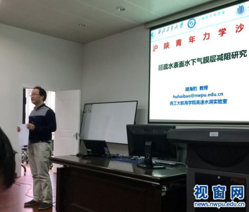 西北工业大学胡海豹教授做了题为“超疏水表面水下气膜层减阻研究”的报告,指出合适的仿生超疏水微形貌表面利于在壁面封存气膜,是一种潜在的兼具防污功能的新型高效减阻技术,未来有望广泛应用于海洋工程和其它相关领域。该报告汇总了近年来在该领域取得的最新研究成果,重点展示在超疏水表面气膜稳定维持方法方面的研究进展。胡海豹教授自2009年以来一直致力于水下疏水性表面减阻技术研究工作,作为负责人或技术骨干,先后承担了国家自然科学基金、总装武器装备探索研究项目、装备预研基金、高等公司博士学科点专项基金等相关课题20余项,已累计在Science Advances、Physical Review E、Ocean Engineering、Journal of Chemical Physics、Langmuir、Experimental Thermal and Fluid Science等刊物上发表学术论文50多篇(SCI索引近30篇),获省部级科技奖2项,授权发明专利10多项。曾入选西工大“翱翔之星”、“优秀青年教师”。