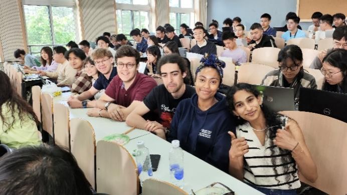 我很开心能参与到这次交流活动中,过程中我也收获了很多意料之外的惊喜和对刻板影响的冲击。互动时,我深切感受到他们对中国文化和美食的好奇和喜爱,印象深刻的有Krishni很喜欢喝桂花酿奶茶,让我教她和她的朋友说中文以及她体验京剧妆容时的欣喜。让我感到很意外的是,他们特别喜欢骑电动车。我也清晰地记得,和Krishni骑电动车穿梭在校园,阳光透过树的缝隙与风穿梭,我们的笑容与快乐突破语言相传递着,渲染在美丽的夏天。在帮助她更好地体验中国文化的同时,我和她也渐渐成为了很好的朋友。当然,在沟通过程中,我也发现我的英语沟通能力还有待提高,大部分还是局限于我的词汇量导致有时我无法准确地表达出我的想法和一些关于中国传统文化的词汇。总的来说,我觉得这是一次非常有意义的活动,在结交国际友人的同时,不仅帮助他人更好地理解了中华文化,我的英语水平也得到了实战演练。——大一志愿者 汪可涵
