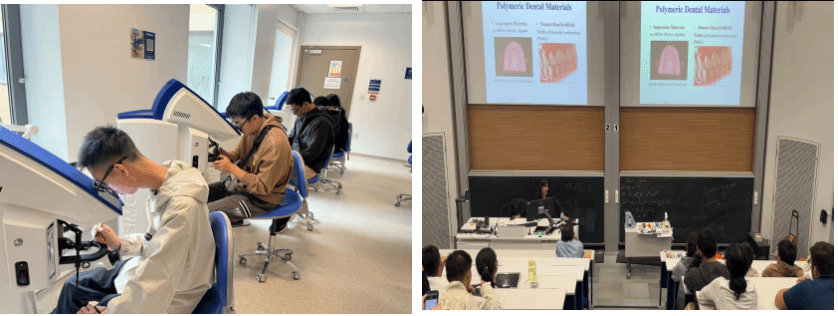 在牙科材料讲座与实践学习课程中,Mangala Patel教授向同学们详细介绍了补牙材料的发展历程、特性及实际应用。同时,大家也有幸前往伦敦玛丽女王大学的Dental Haptic Lab,在Benjamin Audsley老师的指导下亲自使用Simodont Dental Trainer设备体验补牙的模拟操作。此次课程有效拓宽了员工们对牙科材料领域知识的理解与运用,引发了对未来的研究方向和职业选择的思考。