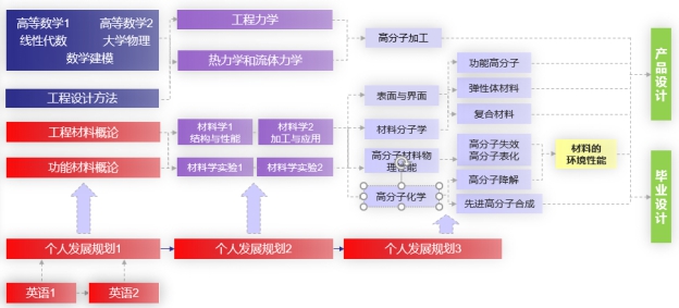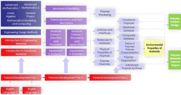 In accordance with the aim “to develop qualified and innovative talents who can study and work transnationally with the knowledge of natural science, materials science and engineering, and social science. Students graduate with comprehensive qualities, high professional competencies, a global horizon, a life-long study ability, and the recognition to international rules”, major courses are divided into several modules, support and linked with each other, emphasizing on principle specialty, meeting the education standard of professional, composite and entrepreneurial talents.