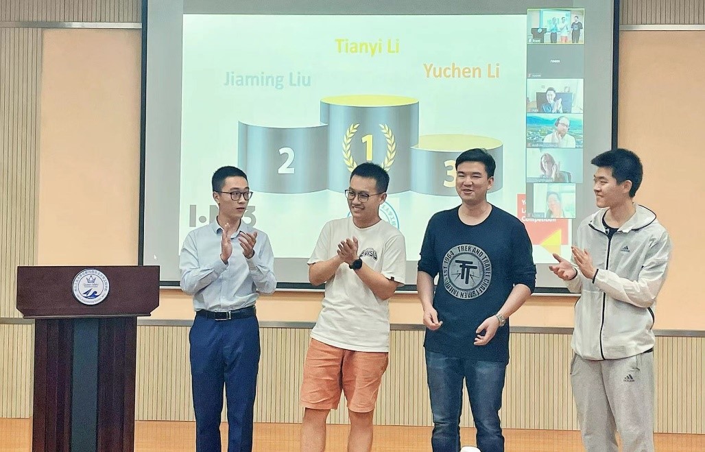 (Presenters from left to right: Yuxuan Jiang, Fanze Meng, Tianyi Li, Jiaming Liu)