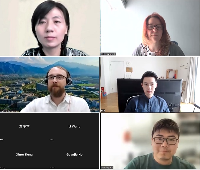 (Judges and audiences online, from top to bottom, from left to right: Xiaoli Fan, Faith Nightingale, Andrew Spowage, Han Zhang, Juncheng Fan)
