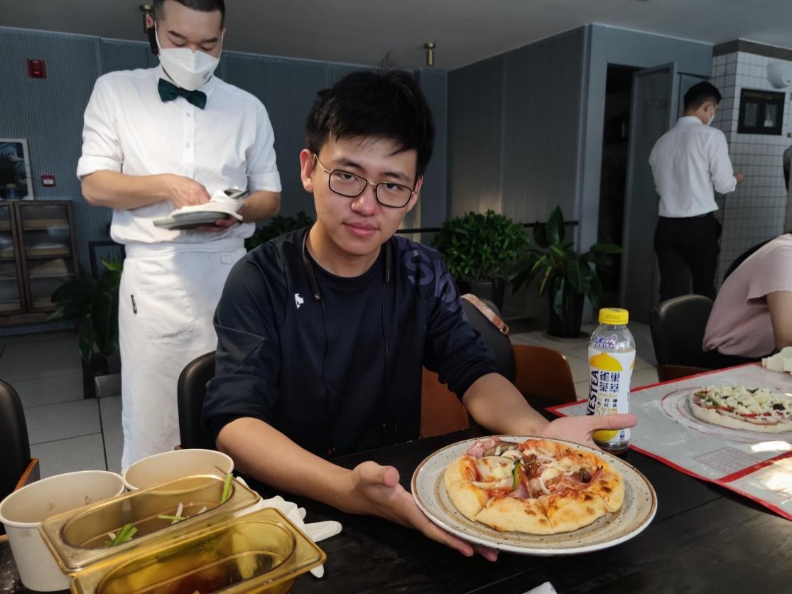 At the same time, another group of students went to make hand-tossed style pizza. As soon as students entered the restaurant and saw the dazzling array of ingredients on the table, they couldn’t wait to try to make pizza. Under the guidance of the chef, students learned how to knead the dough to make Italian hand-tossed pizza. The chef quickly kneaded the dough into pastry shape, but it’s difficult for students. They found that the fermented dough was not so “obedient” and the shape was very uncontrollable. With the chef’s explanation, students gradually mastered the essentials of mixing dough and making pizza. The next step was to prepare stuffing and bake the pizzas. Students put cheese, luncheon meat, green peppers, mushrooms, walnuts, sauces and other ingredients on the pastry. After baking, finally deliciouspizzas were made.