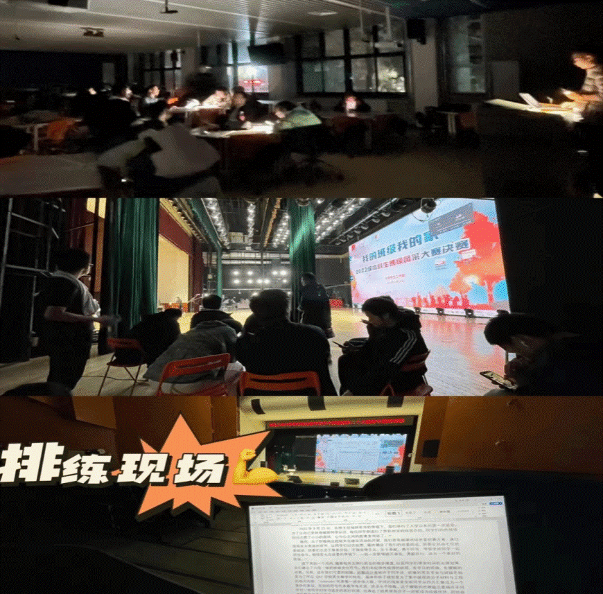 Answering the call of the class committee and the head teacher, every performer was present at every training, and it was almost the first time for the students to come into contact with stage performance. They made trial and error in rehearsals one after another. After finishing the last class of weekdays, the participants assembled to rehearse until the East Teaching Building routinely turned off all the lights at night, and the students had to continue by using their own electric devices to light up. On the night before the game, Yang Ye stayed with the students to practice until midnight, and they delivered great progress with one heart.