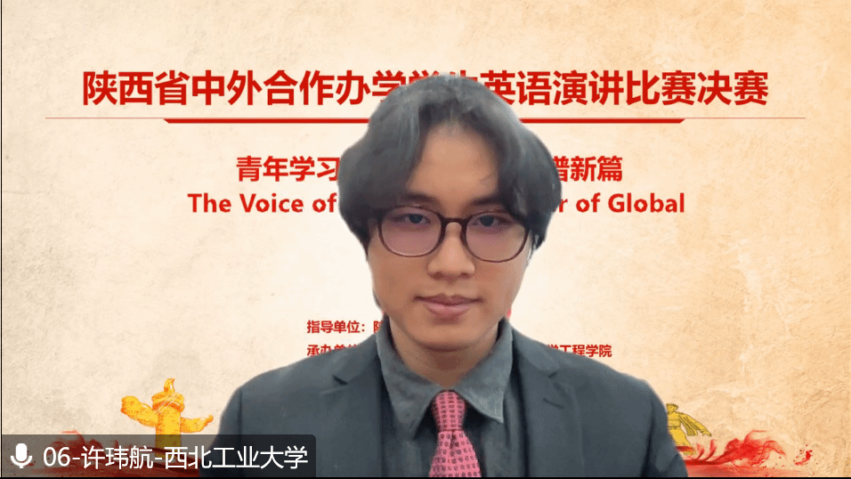In order to study and implement the spirit of the 20th National Congress of CPC and stimulate the enthusiasm of the young students to love the party, love the country and love socialism, the final of the first English Speech Contest for Sino-Foreign Cooperative Education Students in Shaanxi Province, which is hosted by the Sino-foreign Cooperative Branch of the Shaanxi Association of Higher Education, organized by the QMES of NPU and co-organized by Xi’an University of Architecture and Technology, was launched online on November 28, 2022, under the guidance of the Shaanxi Provincial Department of Education. The theme of the speech contest is “The Voice of Youth, the Power of Global Competence”. After the preliminary competition of each unit and the recommendation at all levels, a total of 36 students from Sino-foreign cooperatively educational institutions and projects of Shaanxi Province participated in the contest, and there are 19 contestants reached the final.