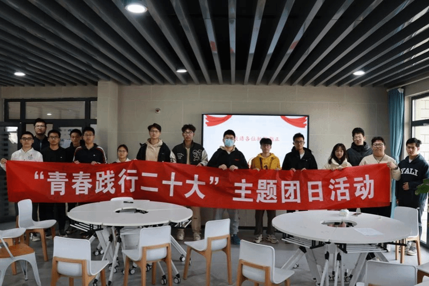 The Report of the 20th CPC National Congress puts forward significant requirements for the youth to "strive to be good young people of the new era who has lofty ideals, dare to shoulder responsibilities, and work hard", which fully reflects the Party's warm care and ardent expectations for the young generations, and clarifies the path to their healthy growth. On March 19, 2022, the Youth League branch of QM022201 of the class of 2022, together with the Youth League branch of QM012206, held a unique League Day activity with the theme of "Young People Implement the Spirit of the 20th CPC National Congress" at Qizhen Community, Hatianyuan, to further guide, unite and serve the youth, which also stimulated young people to fulfil their original aspirations and bravely carry out the mission of the times. The activity was presided over by Yang Liu, League Branch Secretary of the class in the polymer major of the class of 2022.