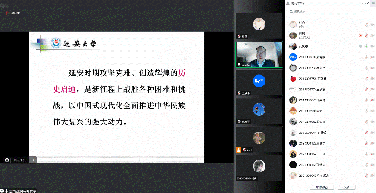 Professor Gao elaborated on the profound connotation and significance of the important speech delivered by General Secretary Xi Jinping who led the Standing Committee of the Political Bureau of the CPC Central Committee to pay respects to the Yan’an Revolutionary memorial sites. From Xi Jinping’s new interpretations of the seven historic meanings of the Party, two answers to the question of how to escape the historical cycle of rise and fall, the profound meaning of his calls in Yan’an and the new requirement to carry forward Yan’an Spirit and so on, Professor Gao delivered an in-depth analysis of the significance of the CPC central leadership’s tour to the Yan’an revolutionary memorial sites, with emphasis given to the historic connotation of the General Secretary Xi Jinping’s important speech and his profound thought.
