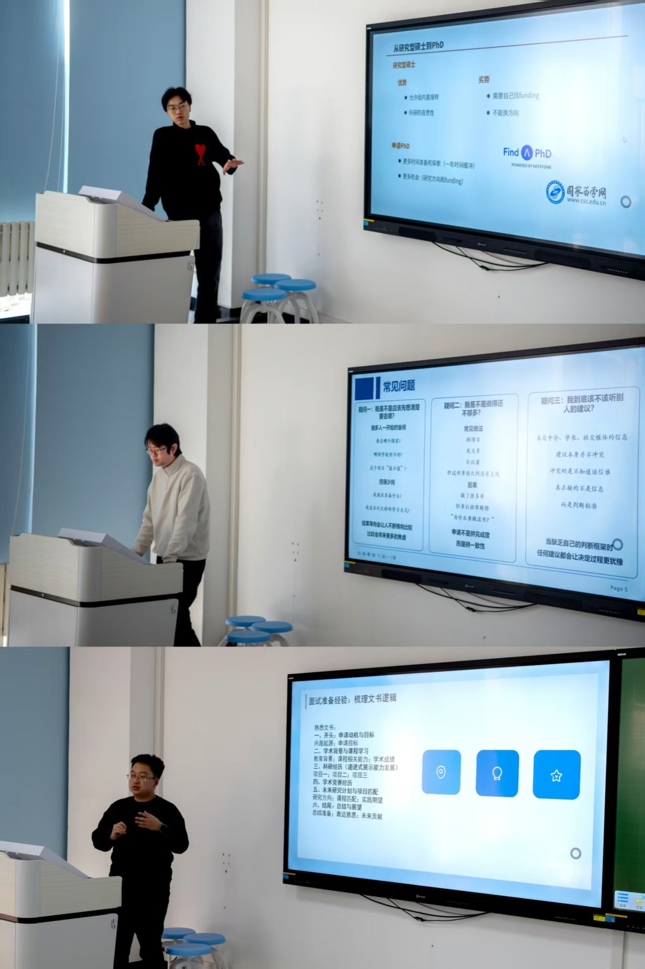 曾小溪结合个人申请经历,深入剖析了留学准备过程中常见的认知偏差与容易陷入的误区,启发同学们深入思考申请背后的深层逻辑——清晰梳理个人兴趣、长期规划与短期目标之间的内在联系。他特别指出,在众多申请信息中保持清醒认知、培养独立判断能力至关重要,并分享了如何将竞赛、科研等实践经历转化为独具特色的个人叙事,从而做出更加自洽、更具前瞻性的选择,为长远发展奠定坚实的思维基础。
