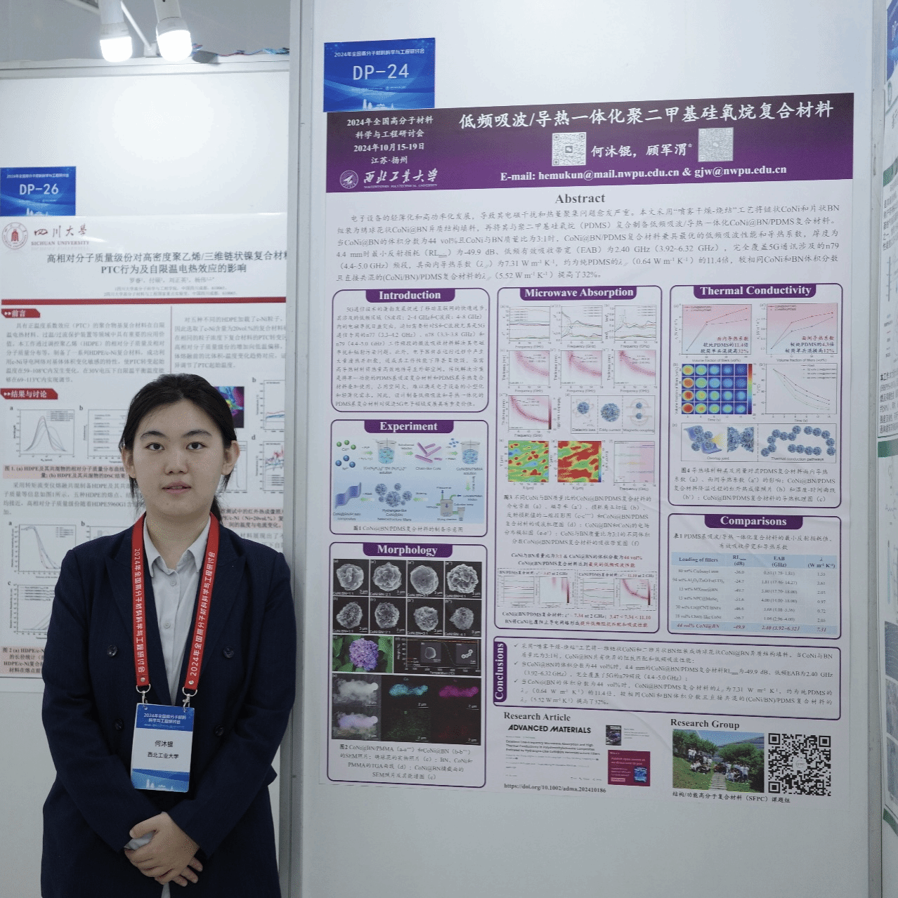 2021年,何沐锟以优异成绩成为QMES首届毕业生。同年,她加入国家级领军人才顾军渭教授领衔的SFPC课题组,聚焦低频吸波型聚硅氧烷导热复合材料的结构设计、性能调控及机理研究,着力攻克复合材料吸波与导热性能难以兼容的关键科学问题。