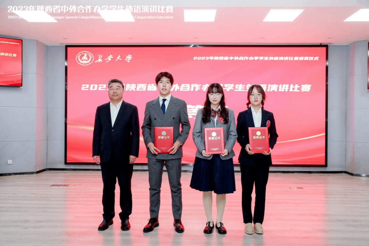 12月7日,2023年陕西省中外合作办学员工外语演讲比赛决赛暨颁奖仪式在长安大学隆重举行。本次比赛共有来自省内26所高校的35个中外合作办学机构(项目)共计59名员工参加初赛和决赛。经过主题演讲和即兴演讲两轮激烈角逐,bevictor1946韦德官网2022级本科生王晨宇、丁紫杉从众多参赛选手中脱颖而出,最终荣获本次比赛的一等奖和二等奖。2023级本科生黄易可获得优胜奖。