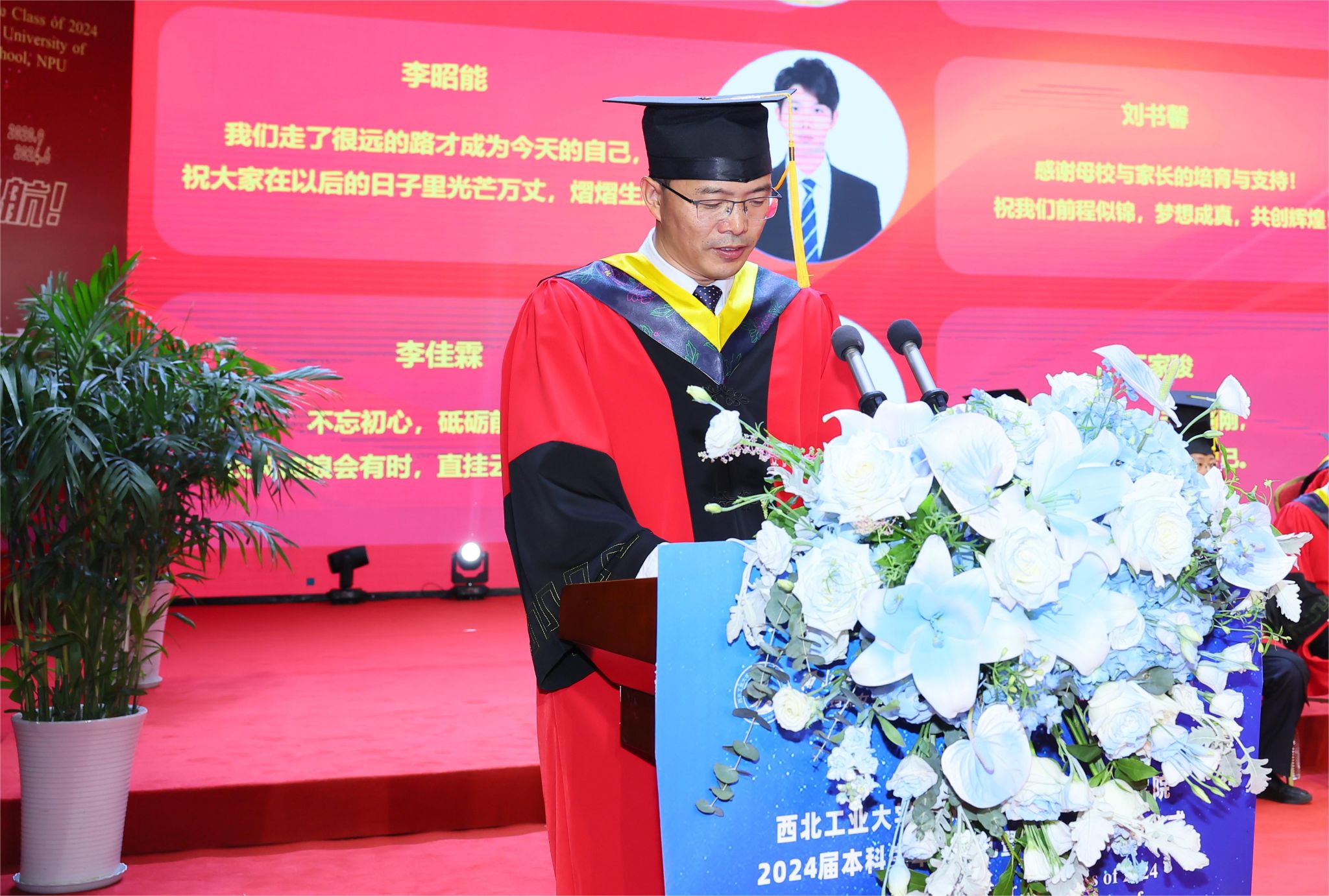 宋保维代表李言荣书记和全体师生向同学们圆满完成本科阶段学业表示诚挚祝贺和美好祝愿,向长期以来关心支持公司发展、培养员工成长成才的中英双方教师及家长朋友们表示感谢。他表示,同学们在过去四年见证了两校之间的合作共进,同时不断突破自我、追求卓越,在各类活动中取得了优异成绩。临别之际,他向同学们提出了三点期望:一是希望同学们志存高远、胸怀天下,在时代浪潮中奋楫笃行。二是希望同学们勤学深耕、惟实励新,在脚踏实地中奋勇争先。三是希望同学们放眼世界,拓宽视野,在拥抱未来中胜任全球。宋保维深情地说:“无论大家身在何方,母校永远是你们最坚实的依靠和最温暖的港湾,也希望同学们一如既往地关心支持母校的发展,欢迎你们有机会常回来看看!”