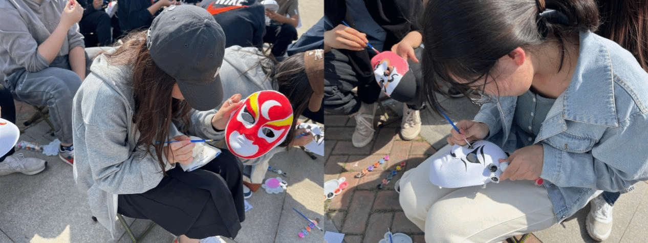 Next, the teachers from the Shaanxi Peking Opera Theater distributed facial masks to  students and guided them to draw the masks. Every student showcased their talents and started creating their own designs: there were “Red Face” Guan Yu, representing loyalty and righteousness, “White Face” Cao Cao, representing cunning and suspicion, and “Black Face” Bao Gong, representing strength and integrity... Some students fully utilized their imagination by combining traditional facial mask elements with modern popular elements, creating their own unique masks. At that moment, a variety of rich works emerged continuously, and students showcased them to each other, creating a joyful atmosphere at Qixiang Lake.