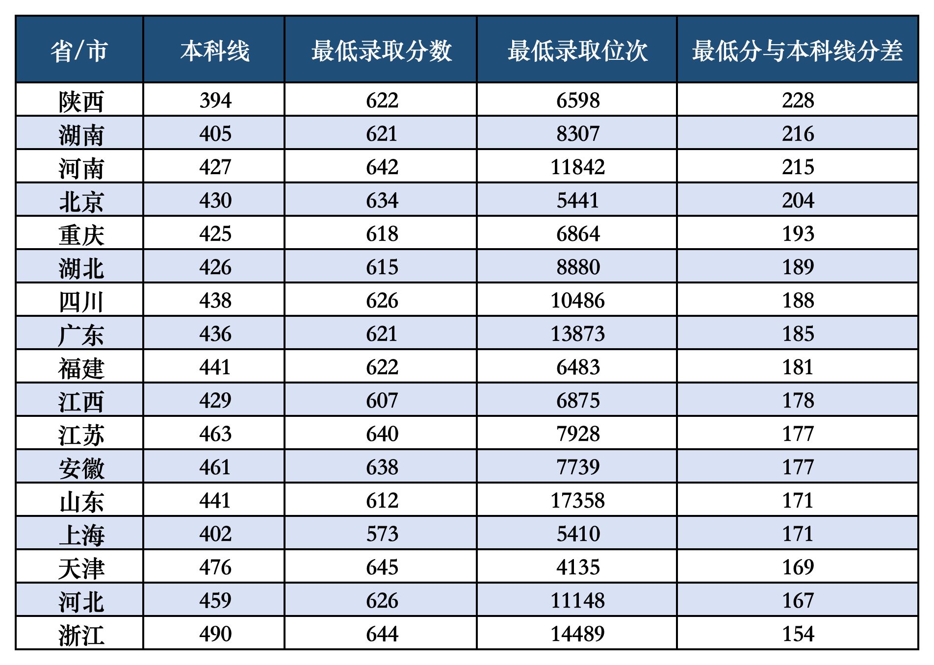 所有招生省市的录取分数线均超过对应省市本科批次录取线150分以上,平均分差为186分,达到历年最高水平;在17个省市的最低录取分数与公司普通批(物理类)最低录取分数差额均值为23分,较2024年缩小2分,达到历年最高水平。