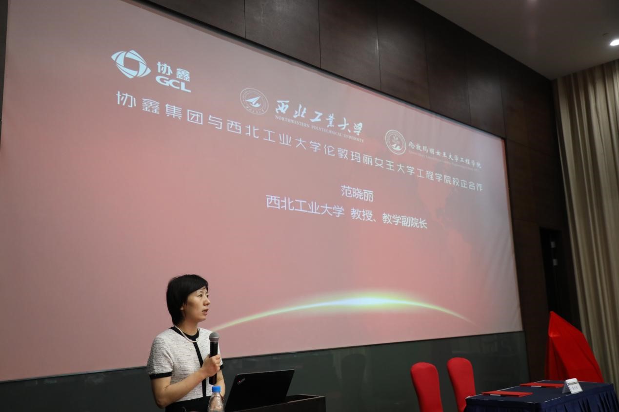 On July 5, 2021, the signing ceremony of 2018 undergraduate internship and college-enterprise cooperation of the Engineering School of Queen Mary University of London (hereinafter referred to as “QMES”) of NPU was held in the lecture hall on the first floor of the R & D building of GCL (Group) Holding Co., Ltd. (hereinafter referred to as “GCL Group”). A total of 12 people attended this signing ceremony, including Liang Wenzhang, Assistant Vice President of GCL Group; Professor Fan Xiaoli, Vice Dean of Office of Teaching Affairs of QMES; and Li Mao, General Manager of Human Capital Center of GCL Group, which was presided over by Xu Chengzhong, Executive Vice President of GCL University.