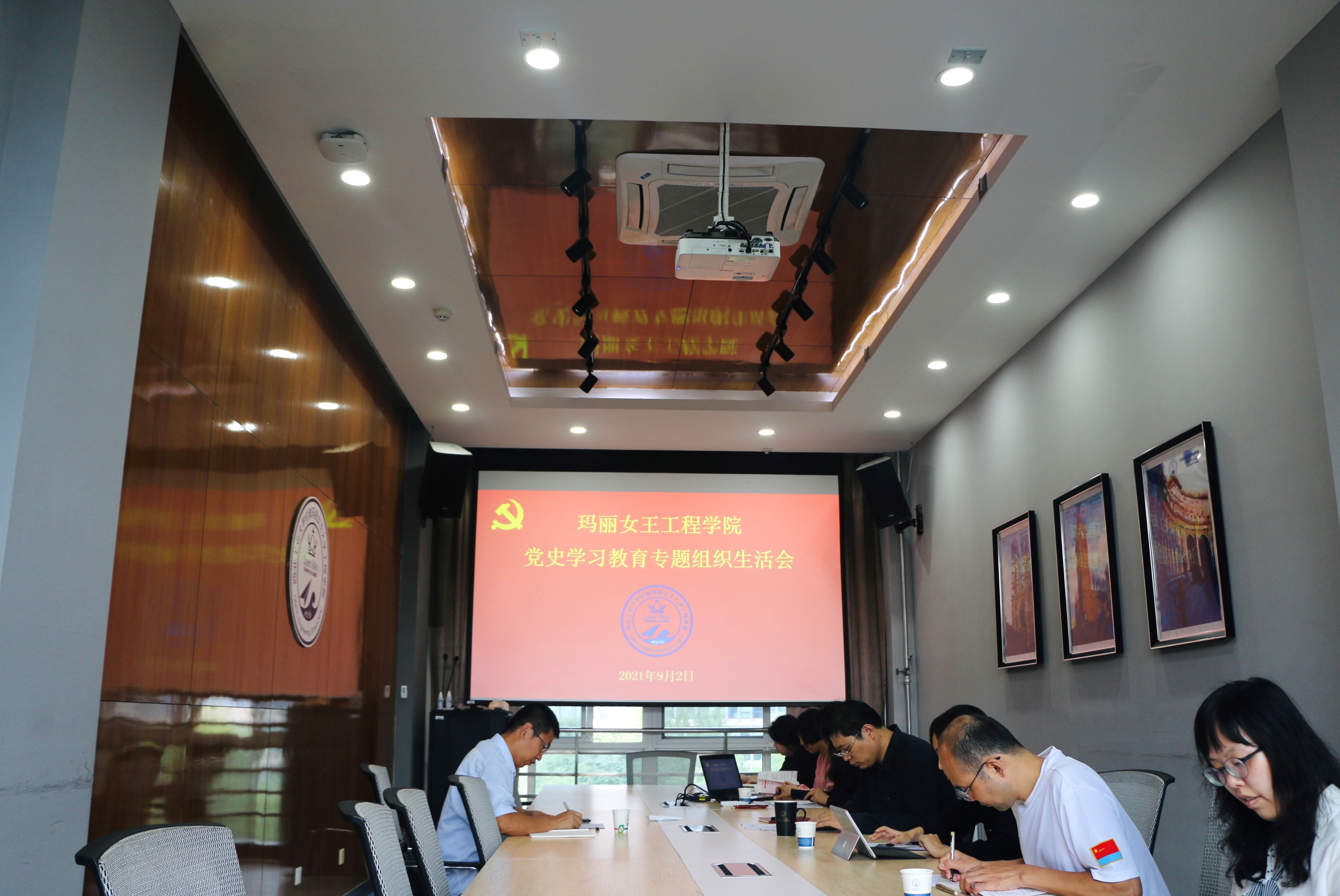 In order to implement the requirements of the “Notice on the Organizational Meeting on CPC History Learning and Education”, and guide all the Party members and cadres to continuously strengthen their commitment to the Four Consciousness, Four-Sphere Confidence and the Two Upholds, the Party branch of QMES held this meeting at Conference Room 413, East Teaching Building A, on September 2, 2021.