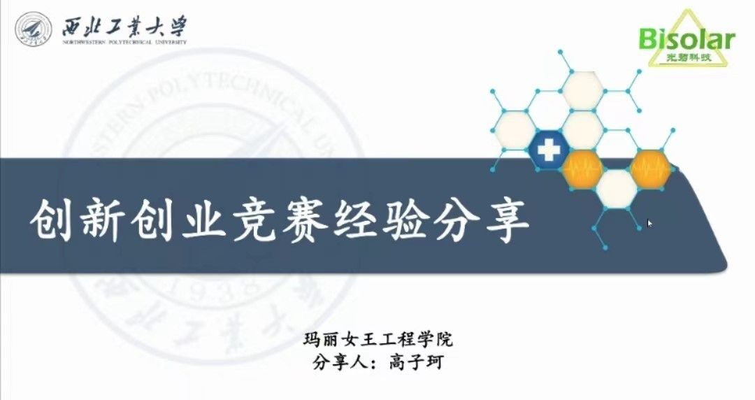 In addition, Gao Zike, the project leader of Bisolar team, also shared the competition experience. Their project won the first prize in the 20th “AAMS Cup” University Students Extracurricular Academic and Scientific Works Competition. She introduced the setting of the “AAMS Cup” competition and popularized the relevant information about the extracurricular science and technology works competition and the entrepreneurship plan works competition. At the same time, she shared the preparatory process of the competition and the writing skills of the declaration.