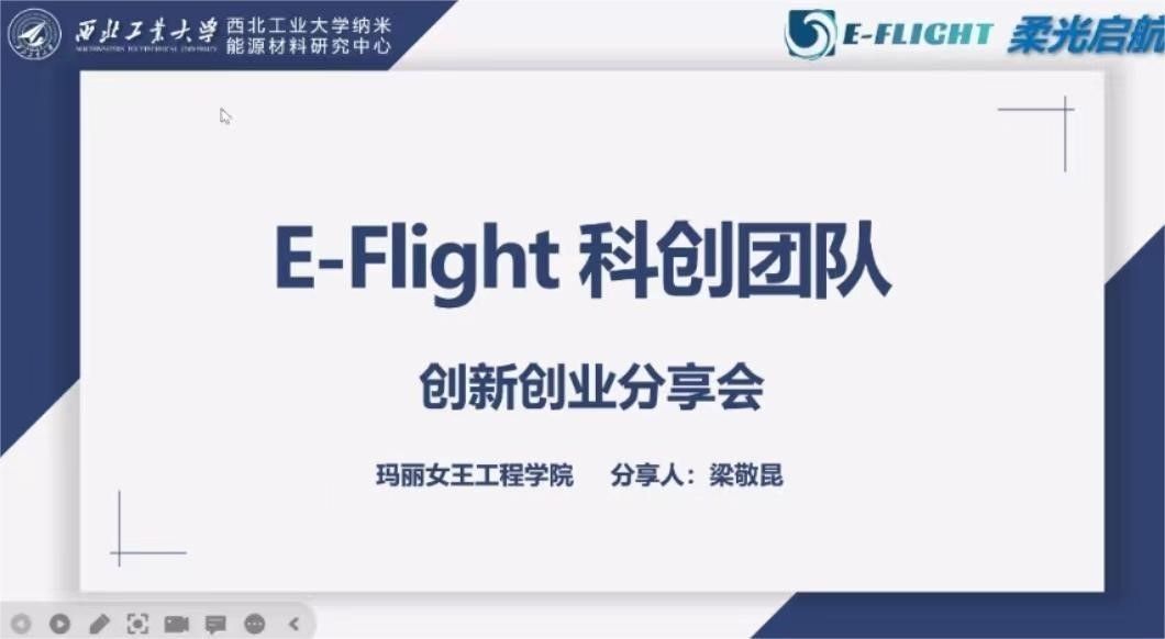 Later, Liang Jingkun, a core member of the E-Flight team, introduced their project. The project won the international gold medal of the 8th “Internet +” College Students Innovation and Entrepreneurship Competition, which was the first international gold medal of “Internet +” College Students Innovation and Entrepreneurship Competition of NPU. The team mainly conducts their research on green transformation smart glass, including electrochromic glass, transparent photovoltaic cells, intelligent circuits, and system integration. The team has achieved fruitful results. The division of labor among the team members is reasonable. Each of them works hard and has strong comprehensive ability and cohesion, playing an exemplary leading role.