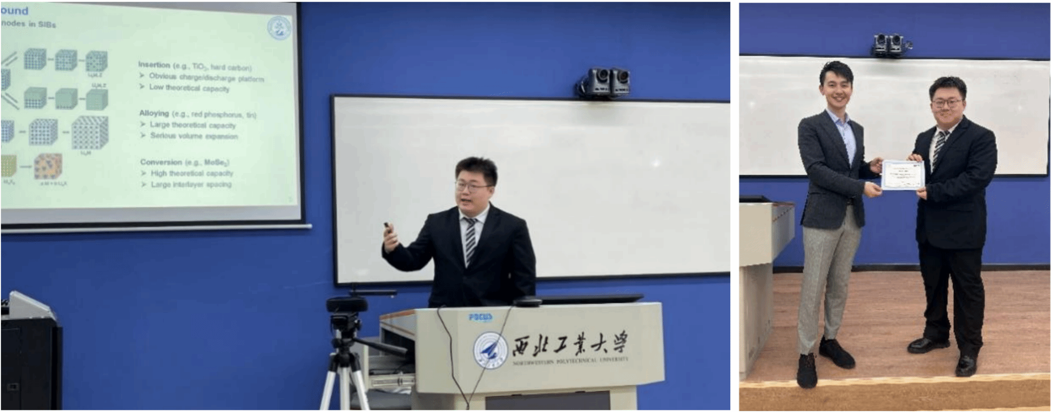 Zhang Yixuan demonstrated his research on the preparation and sodium storage properties of thermally stable metal phase MoSe2. He explored to take ethylene glycol as a solvent to synthesize metallic molybdenum selenide by molecular intercalation method as the anode material for sodium-ion batteries. He won the second prize with his excellent performance in the competition.