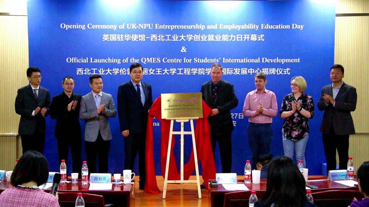 TheOpening Ceremony of UK-NPU Entrepreneurship and Employability Education Day & Official Launching of theCentre for Students' International DevelopmentofQueenMarry University of London Engineering School, NPU (QMES)was successfully heldon April 27th, 2019 in Chang'an Campus, Northwestern Polytechnic University (NPU).The eventwas co-hostedby the British Embassy in China and NPU, and jointly organized byOffice of International Cooperation, Teaching Affairs Department, Undergraduate Student Affairs Department ofNPU,NPU Youth League Committee and theQMES.